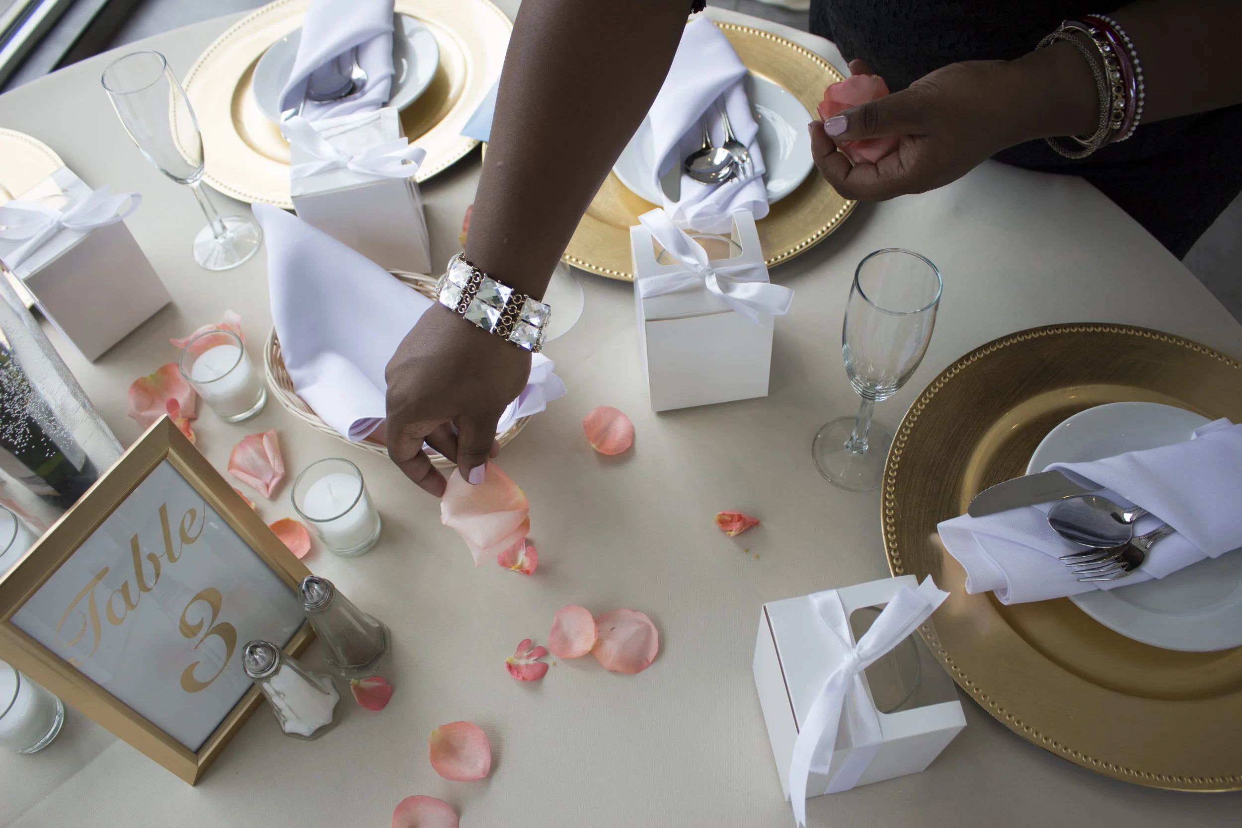 Summer details with glass, peach, and whites.